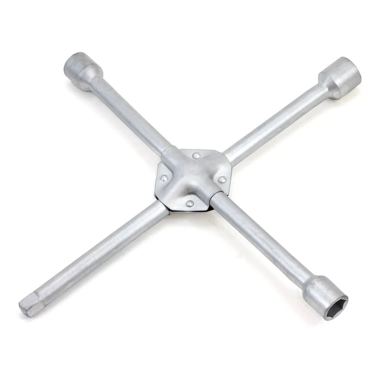 Wysokiej jakości klucz polecany do domowej wymiany kół i jako wyposażenie samochodów osobowych i dostawczych. Poradzi sobie z najbardziej zapieczonymi śrubami. Posiada 4 ramiona z nasadkami sześciokątnymi, 4 metryczne w rozmiarach 17mm, 19mm, 21mm i 1/2".