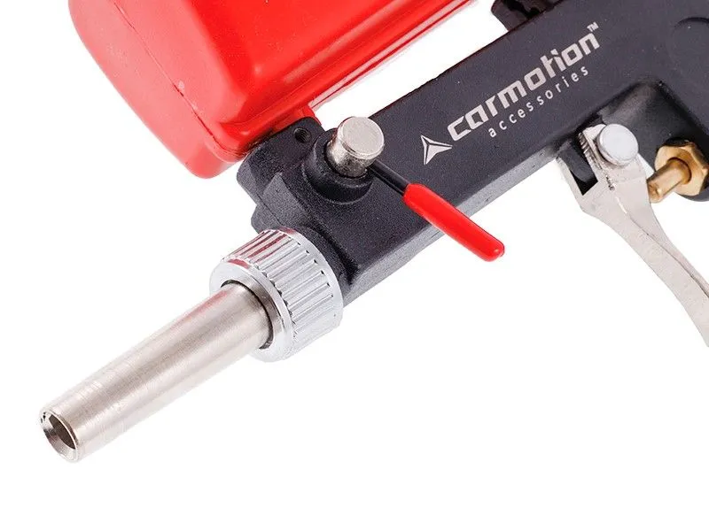 Prosty w obsłudze pistolet do piaskowania, idealnie sprawdza się przy zdzieraniu farby, usuwaniu rdzy i innych pracach czyszczących. Umiejscowienie zbiornika na ścierniwo na górze urządzenia gwarantuje mniejsze zapotrzebowanie na powietrze, dzięki czemu do zasilania wystarczy mały kompresor.
